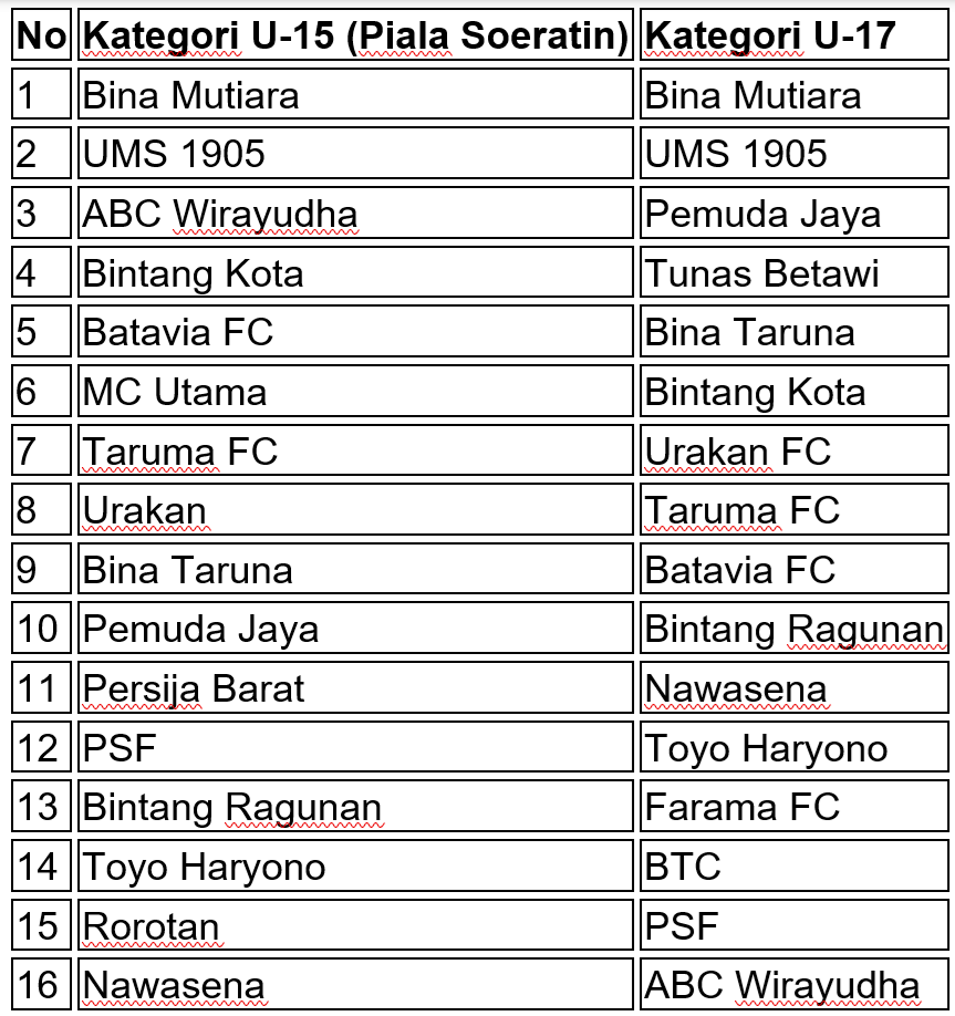 Berikut adalah tim-tim yang terpilih berdasarkan keanggotaan sah Asprov/Askot PSSI DKI Jakarta dan partisipasi musim lalu: